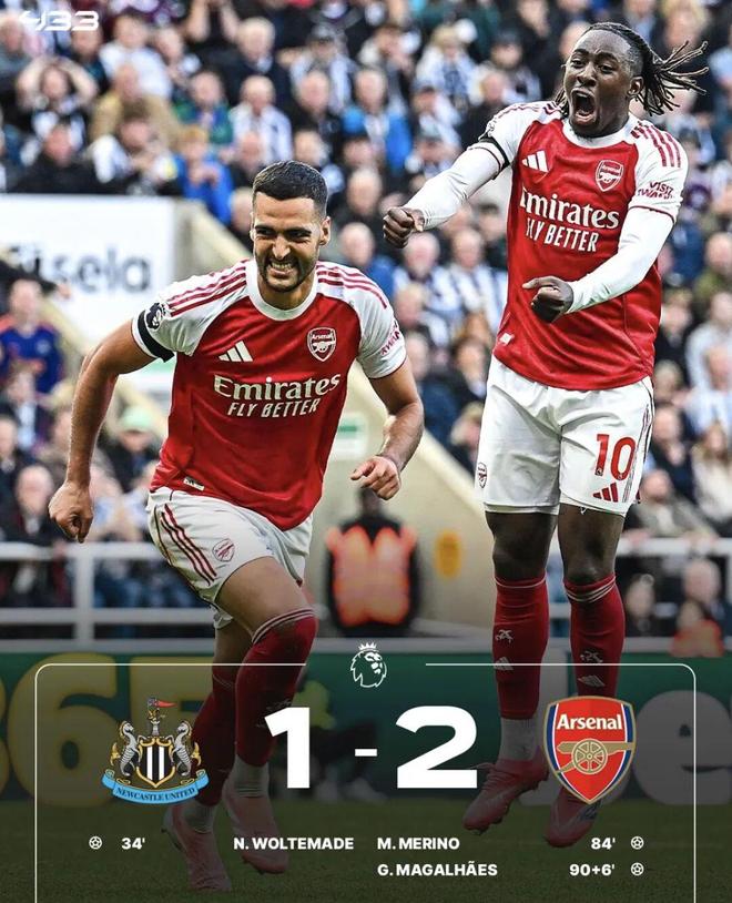 今天凌晨结束的一场英超焦点战,枪手在客场2-1逆转击败纽卡,抢下关键的3分!