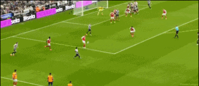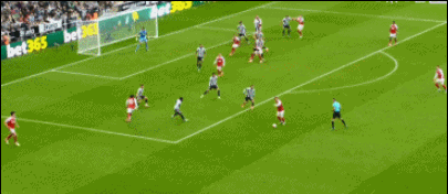 第34分钟,托纳利传中,沃尔特马德头球破门,纽卡1-0领先阿森纳。