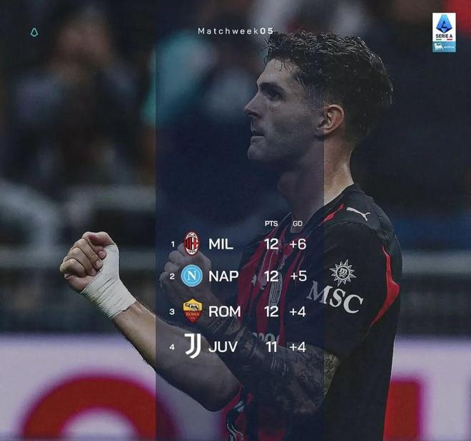 主场获胜的AC米兰,成功登顶意甲积分榜榜首。