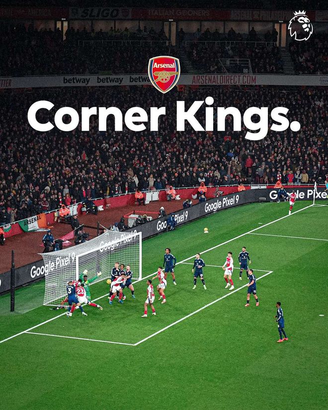 赛后,据Opta的统计,阿森纳自23-24赛季以来,在英超通过角球得分已经打进36球!
