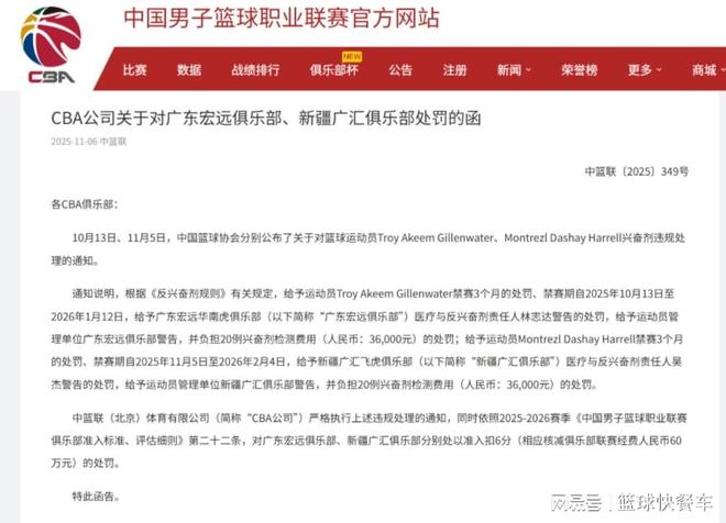 事实上,吉伦沃特和哈雷尔使用兴奋剂违规一事,早在上半年便被爆出来。不过,当时由于种种缘由,篮协方面并没有直接开出罚单。而在上个月,针对广东队外援吉伦沃特,篮协已经提前开出了禁赛三个月的罚单,广东队俱乐部也被警告以及需要垫付兴奋剂检测3.6万元。而哈雷尔则由于其他缘由,篮协当时并没有针对他和新疆队开出处罚。对于这样的处罚力度,当时还有不少球迷不大满意。不过,很显然,他们还是低估了篮协对于该类事件的重视以及处罚力度。近日,中国篮协终于针对吉伦沃特和哈雷尔开出终极罚单。根据篮协开出的罚单显示,吉伦沃特和哈雷尔都会被禁赛三个月。这其中吉伦沃特从2025年10月13日开始执行,2026年1月12日结束。而哈雷尔则从2025年11月5日,到2026年2月4日结束。不过,由于CBA新赛季开赛延迟,他俩其实还是能够赶上新赛季大部分比赛的。相比于吉伦沃特和哈雷尔只禁赛三个月,篮协对于两家俱乐部,则采取零容忍态度。尽管在此前,广东队已经被处罚了。不过,这一次,篮协还是针对广东队追加处罚。上一次,篮协只警告了广东队,并且让他们垫付了3.6万的兴奋剂检测费用(罚款)。而这一次,他们不仅重罚广东队60万元,而且,还处以准入扣6分。换句话说,如果广东队在接下来还出现类似的情况,一旦分数被扣完了,广东队可能连CBA都打不了。新疆队的情况与广东队以后,同样被处以准入扣6分,随后又被追加处罚60万元罚款。对于吉伦沃特和哈雷尔这种情况,广东队和新疆队在事情发生后,他们的表现还是非常主动积极的,各方面都配合体育总局和篮协。而对于吉伦沃特和哈雷尔这种问题,两家俱乐部也在第一时间发文道歉了,并且,保证在接下来会严加管理,不允许再出现类似的情况。从目前的情况来看,吉伦沃特和哈雷尔虽然只被禁赛三个月,按照时间来推算,他们确实还可以赶上大部分比赛。不过,按照CBA目前的现状,在这件事情发生后,大概率不会有球队愿意签下他们了。而且,吉伦沃特的年龄也上去了,个人状态也大不如前。在这件事情发生后,就更加没有球队敢冒天下之大不韪,顶风作案。不出意外的话,在遭到中国篮协禁赛后,吉伦沃特和哈雷尔,恐怕再也无法重返CBA了。