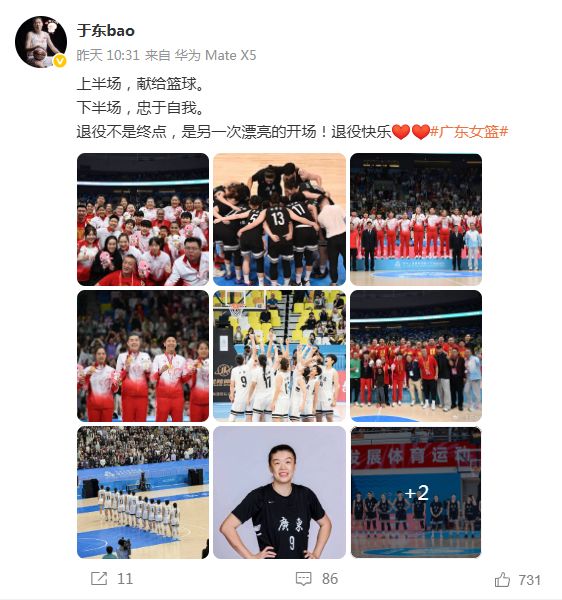 昨天于东发文告别赛场:上半场,献给篮球。下半场,忠于自我。退役不是终点,是另一次漂亮的开场!退役快乐!