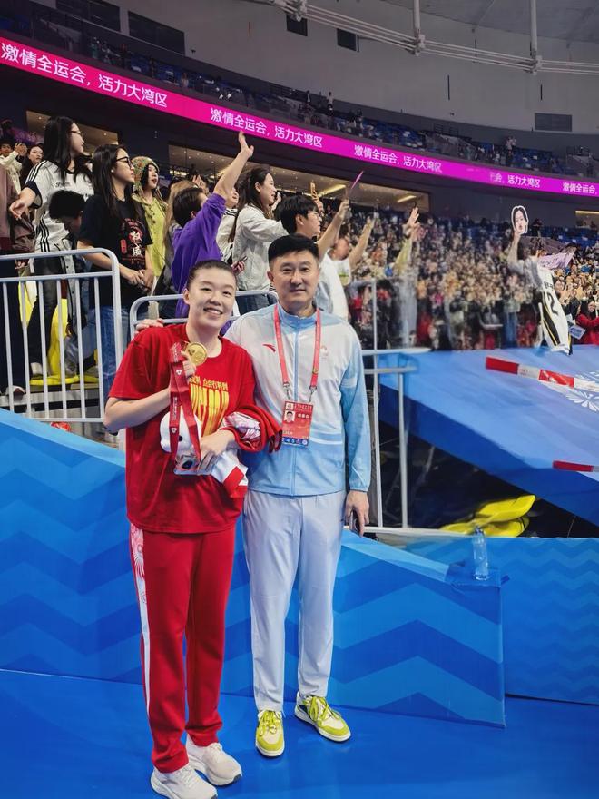 于东老师与广东男篮主帅杜锋合影赛场上,于东老师始终全力以赴,无论是攻防两端的积极跑动,还是赛场内外的默契协作,她都是球队一路过关斩将、最终夺冠不可或缺的支持力量。从三尺讲台到全运赛场,她始终保持昂扬斗志,用实际行动生动诠释了“奋勇拼搏、永不言弃”的体育精神。