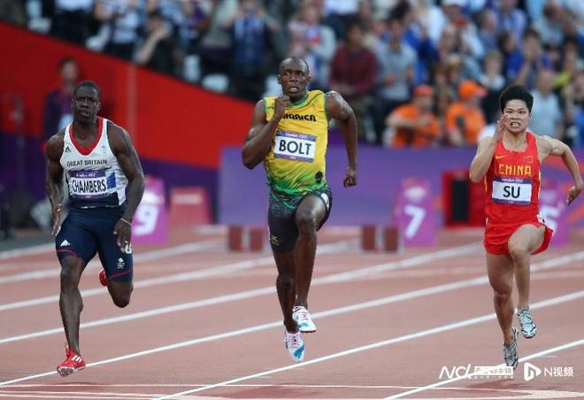 2012年伦敦奥运会男子100米半决赛,苏炳添与世界纪录保持者博尔特同组较量。IC图片