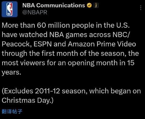- NBA | 肖华立功了!NBA收视率暴增:比赛观众6000万,社媒浏览量300亿!
