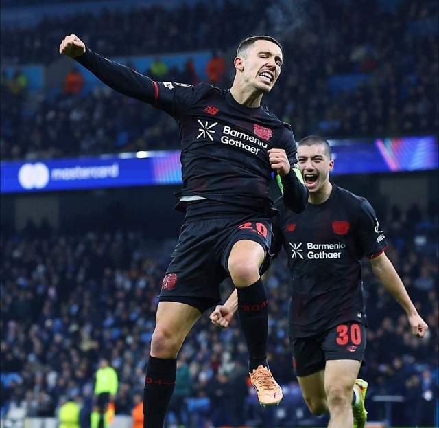 这是瓜迪奥拉执教曼城第100场欧冠赛事,此役哈兰德、多库、福登和多纳鲁马均无缘首发,马尔穆什领衔4231阵型,赖因德斯、萨维尼奥、奥斯卡-鲍勃和尼科-冈萨雷斯出战。勒沃库森方面希克、阿莱士-加西亚、格里马尔多和巴代悉数登场,埃切韦里替补。