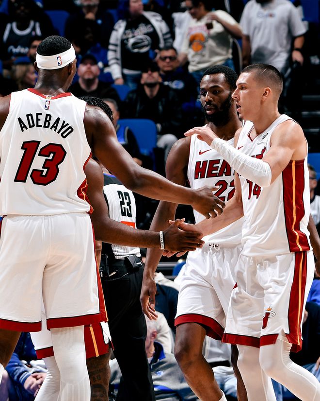 魔术队的瓦格纳因伤缺席,布莱克顶替首发。热火队开赛后迅速进入状态,希罗独得7分,维金斯贡献5分,他们率队以15-0领先。布莱克突破打破球队得分荒,鲍威尔三分命中扩大优势。布莱克和贝恩轮流进攻得手,他们率队追回5分,阿德巴约转身跳投命中,希罗突破得分,热火队稳住局势。魔术队再次反攻又追5分,威尔和鲍威尔合取4分,首节结束时热火队以30-17领先13分。第二节开始后不久贝恩三分中的,达席尔瓦打3分成功,魔术队把差距缩小到个位数。鲍威尔三分回应,班凯罗、萨格斯、贝恩轮流得分,他们引领球队打出11-2的反击高潮,魔术队追至37-39。阿德巴约中投得手为球队止血,卡特很快连拿4分,班凯罗突破得分,半场前3分25秒时魔术队以49-46反超3分。米切尔三分追平,布莱克连进两球,希罗、阿德巴约和米切尔轮流得分,半场结束时热火队以57-56领先1分。