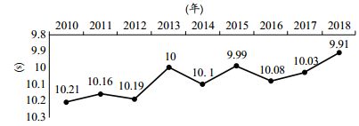 2010年-2018年中国男子100米短跑全国最好成绩示意图丨参考文献[1]