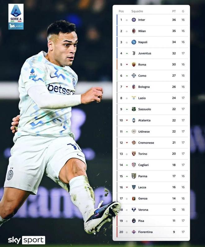 - 意甲 | 意甲球员2025年客场进球榜:普利希奇12球第1,劳塔罗11球第2