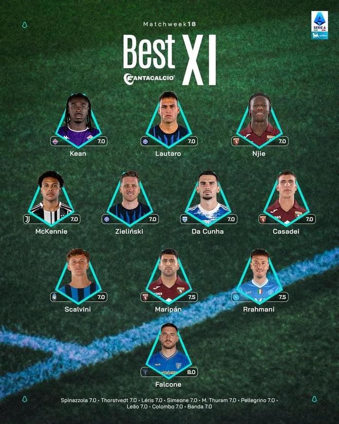 - 意甲 | 意甲第18轮最佳阵容:劳塔罗、泽林斯基、麦肯尼入选