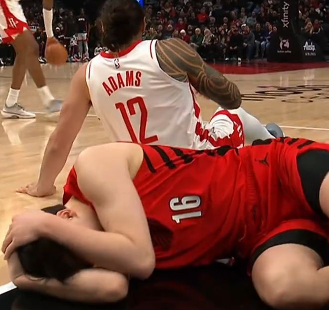 因为在比赛过程当中,杨瀚森在救一次球的时候,整个人摔倒在地,脑袋撞到了勇士球员理查德的小腿上,头磕得捂着后脑勺,躺在地上躺了好久,后面走回更衣室,又返场继续打球,真的很硬啊,很拼呀。就这个球,我们不得不为杨瀚森点一个赞。